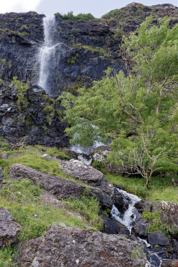 Der Eas Fors Waterfall besteht aus drei sehenswerten Wasserfällen des Allt an Eas Fors, der hier in einer kleinen felsigen Schlucht ins Meer mündet. Es gibt einen kleinen Parkplatz direkt an der B8073, von dem aus die Wasserfälle zu erreichen sind.