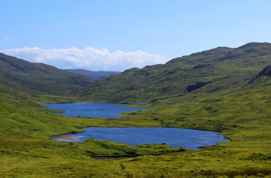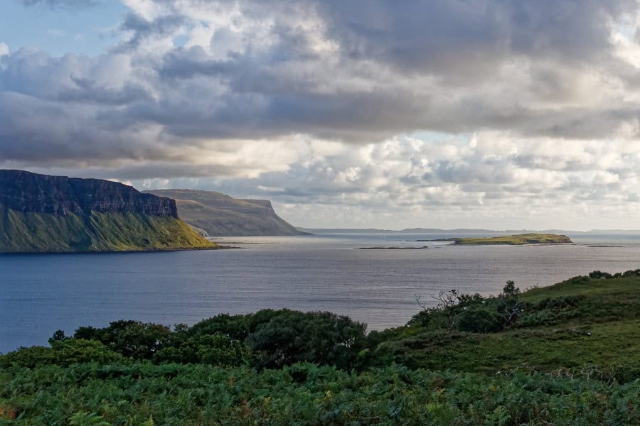 Von einem kleinen Parkplatz aus, erreicht man zwei Bänke auf einem kleinen Hügel, der einen Panoramablick über Loch Tuath bis zu den Klippen von Gribun, der Halbinsel Ardmeneach und auf die Inseln Ulva und Gometra eröffnet.