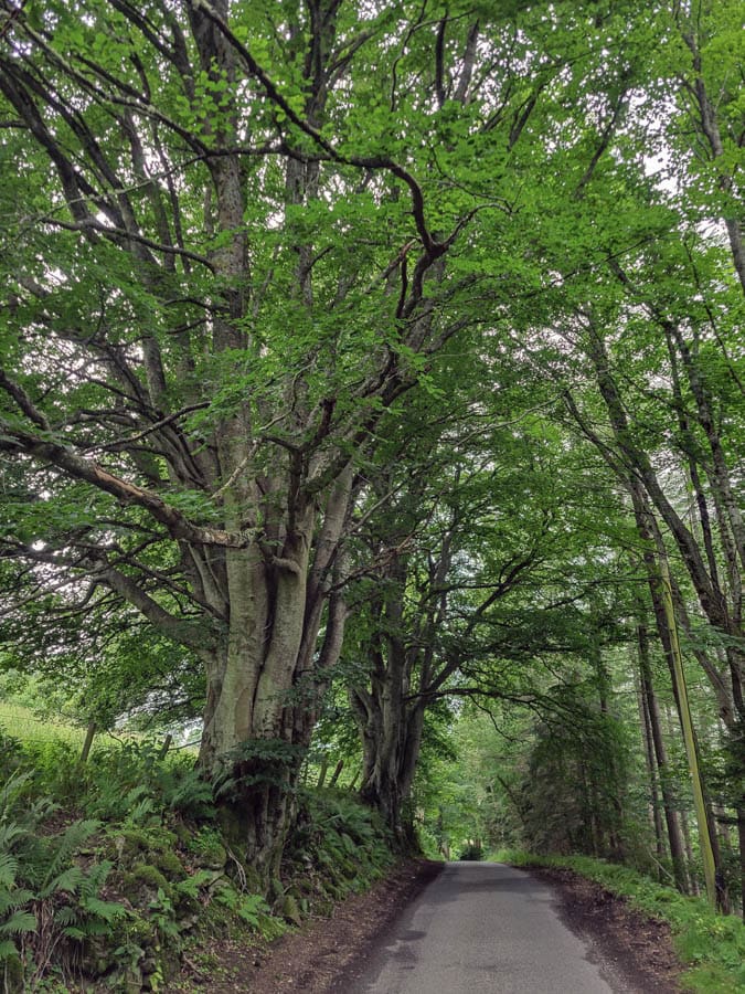 Zurück beim Auto, wusste ich dann auch wo es langgehen sollte. Wir wählten die kleinere Straße, die am Südufer des Loch Tay entlangführt. Single Track with Passing Places, not suitable for Coaches and Caravans, sagt das Schild am Abzweig. Ein oder zwei Weiler gibt es hier, ansonsten ein paar einzelne bewohnte Anwesen und vor allem Cottages – Ferienhäuser. Wir fahren durch die typischen Wäldchen, ab und zu öffnet sich der Blick auf den See und die gegenüberliegenden Berge. Auf unserer Seite kommt ab und zu die Sonne durch, auf der Gegenseite ist Ben Lawers, mit seinen grob 1200 Metern, in dunklen Wolken verschwunden. Und so bleibt das auch an diesem und auch dem nächsten Tag. Dunkle Wolken über den Bergen auf der Nordseite, Sonne auf der Südseite. Ich habe definitiv die richtige Entscheidung getroffen.