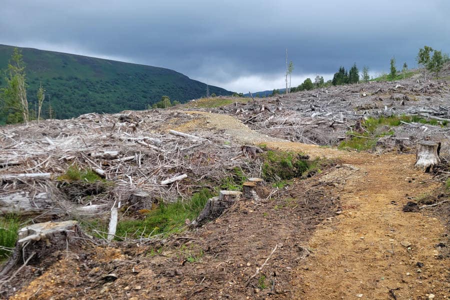 Hier werden ganze Wälder einfach abgeholzt. Katastrophal für die Natur und für uns immer wieder unverständlich. Hier hatte es Waldparkplätze und Wanderwege und es muss einmal wunderschön und idyllisch gewesen sein. Nun ein Bild der Verwüstung. Hier geht niemand mehr spazieren. Aber die Parkplätze gibt es noch.